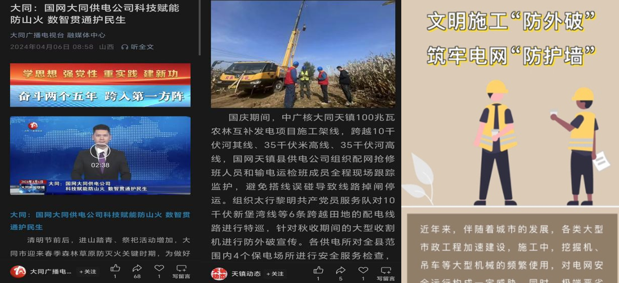 圍繞線下施工高風(fēng)險、破壞電力設(shè)施責(zé)任追究等方面塑造“五力”防外破責(zé)任品牌,與大同市鑫源企業(yè)文化策劃有限責(zé)任公司簽訂合作意向書,制作漫畫宣傳物料,宣傳報道在新華社、《亮報》等主流媒體刊發(fā)。
